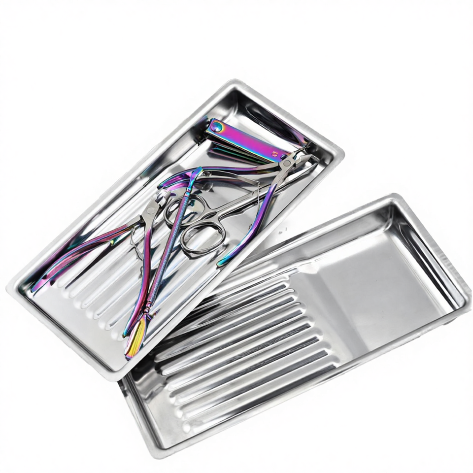 Plateau de désinfection rectangulaire professionnel en acier inoxydable pour outils de manucure, résistant à la corrosion et à l'absorption d'alcool