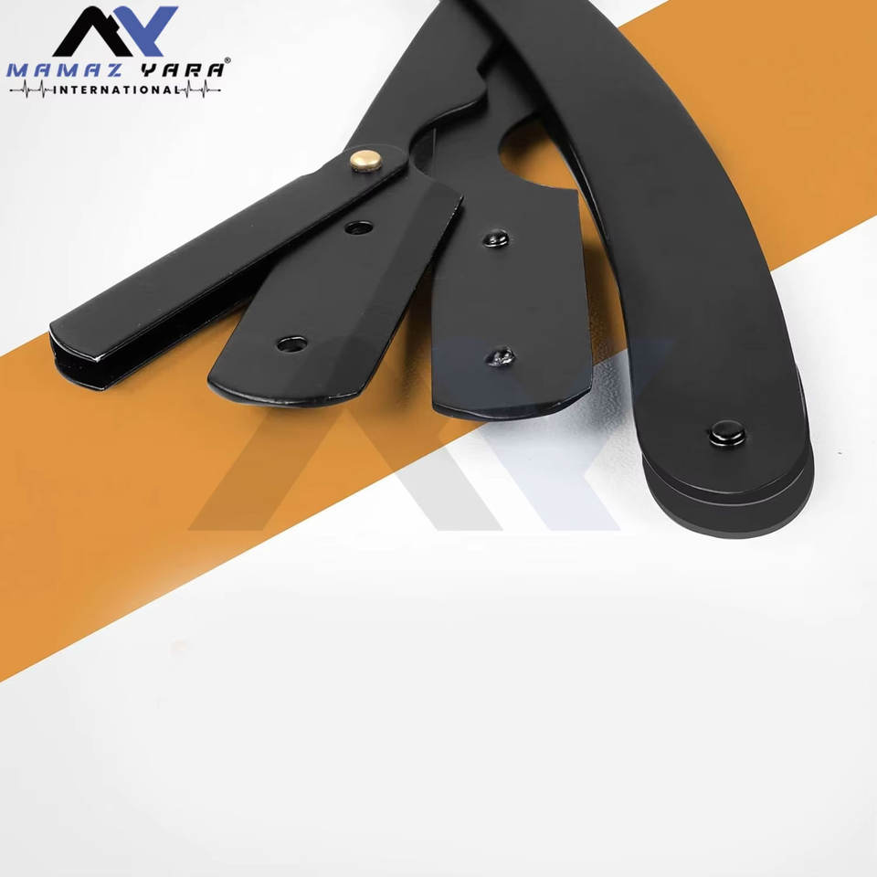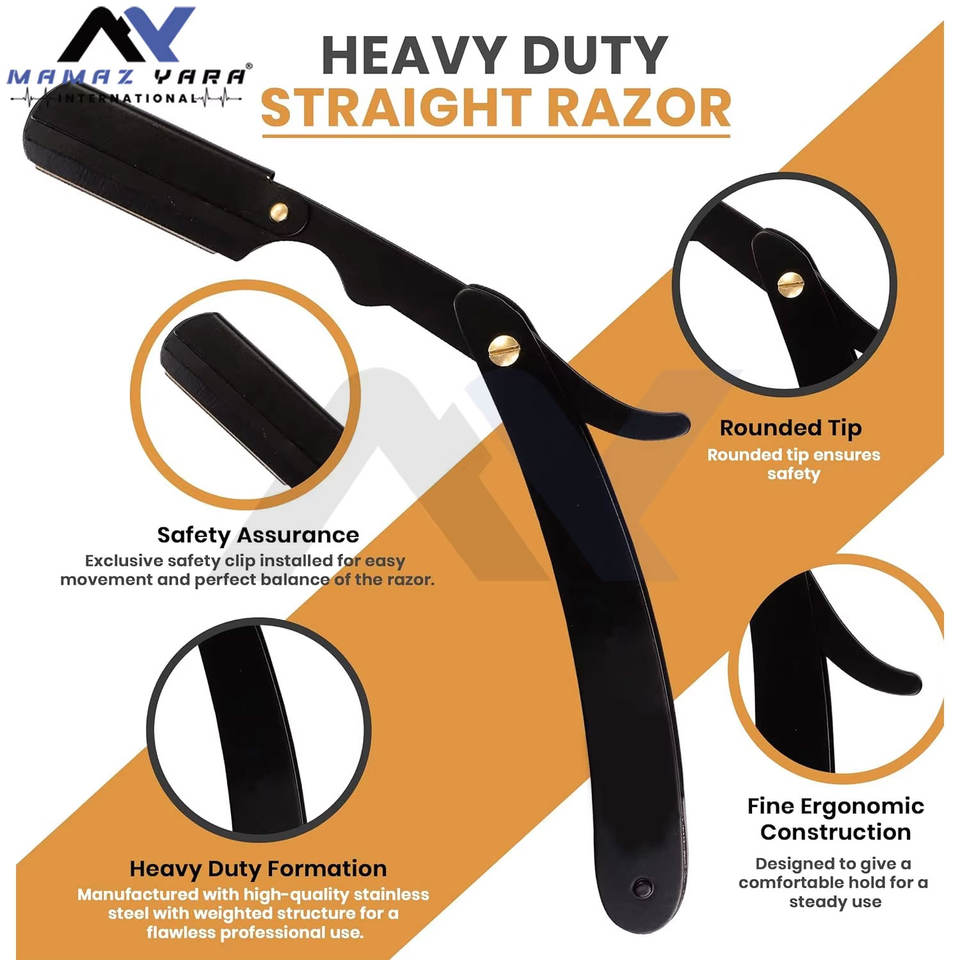 Rasoir droit professionnel en acier inoxydable pour un rasage précis, design noir élégant avec une sécurité à 100 % pour la coiffure