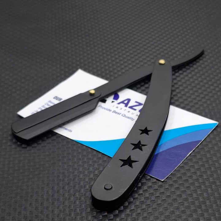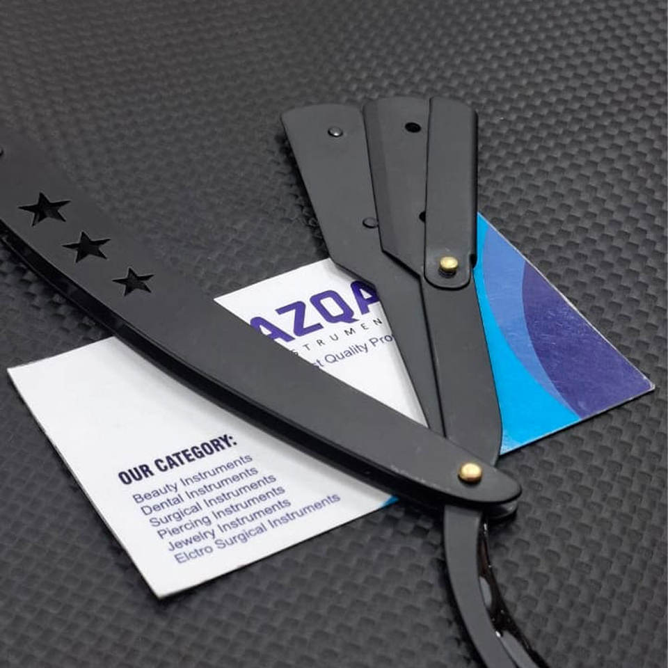 Rasoir droit professionnel en acier inoxydable, couteau de rasage pliable pour barbier, manche noir, lame remplaçable