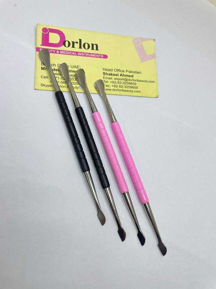 Coupe-cuticules triangulaire professionnel en acier inoxydable, grattoir noir et rose, pousse-cuticules en forme de cuillère pour usage en salon, outils et fournitures pour ongles