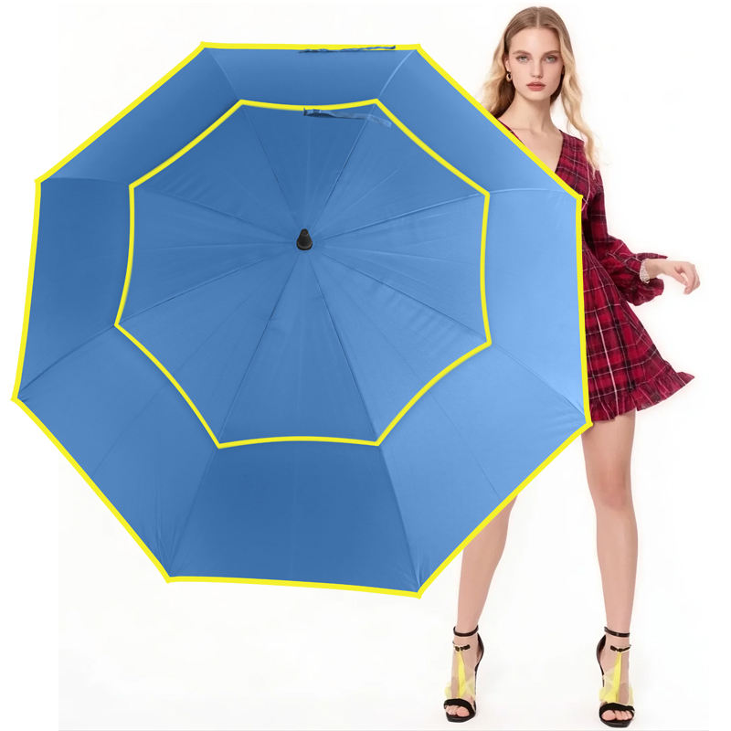 Parapluie de golf professionnel droit vert fluorescent avec bordure, ouverture semi-automatique, aération, couleur personnalisable