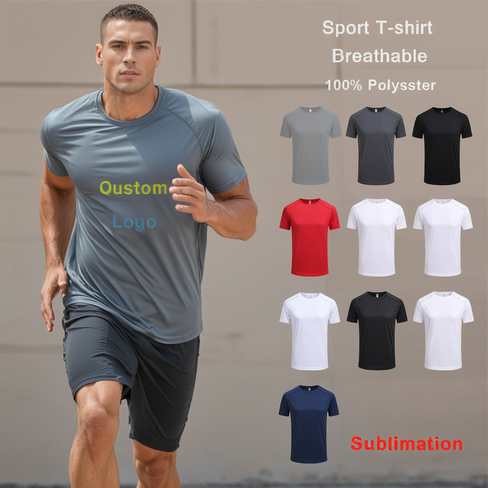 T-shirt de sport en maille polyester respirant, anti-rides, écologique, impression par sublimation professionnelle, personnalisé pour homme, séchage rapide, entraînement