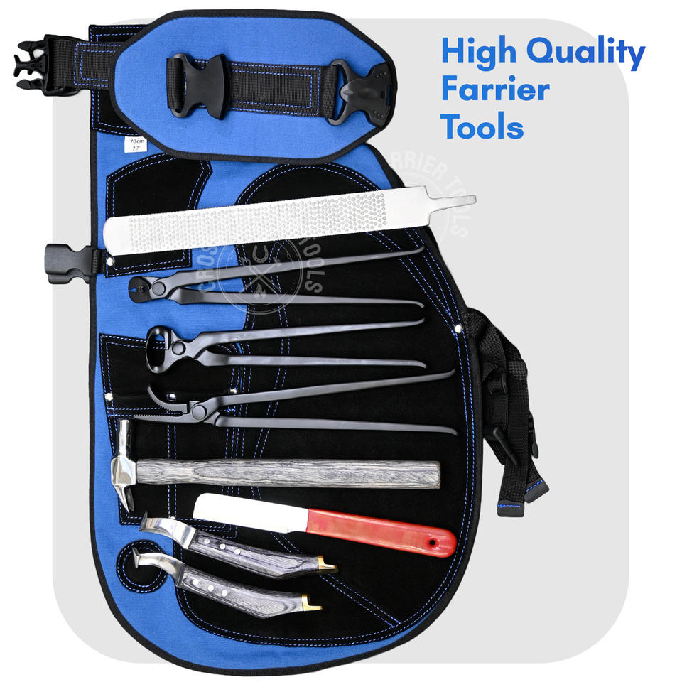 Kit d'outils professionnel pour maréchal-ferrant en cuir suédé : couteau à ongles de sabot, tire-clous, pince, pince à ongles, outil de pose