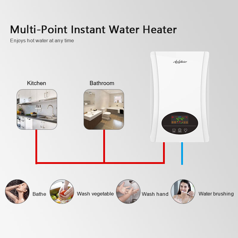Professional Supplier's 8KW Tankless Water Heater Digital Display Touch Screen Control Fast Heating for Residential Electric