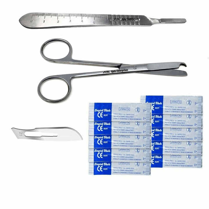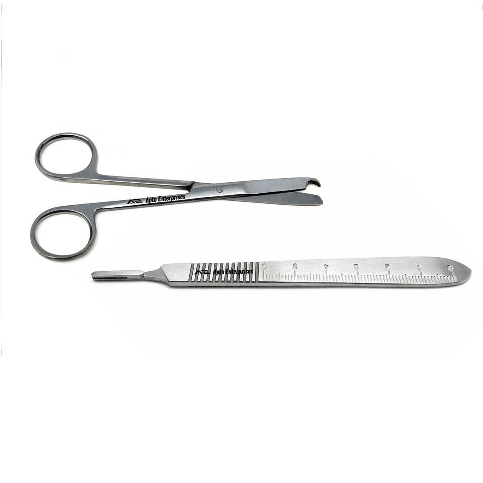 Ensemble d'instruments chirurgicaux manuels professionnels, ciseaux à suturer, manche de scalpel de 4,5 pouces # 4 lames chirurgicales stériles CE