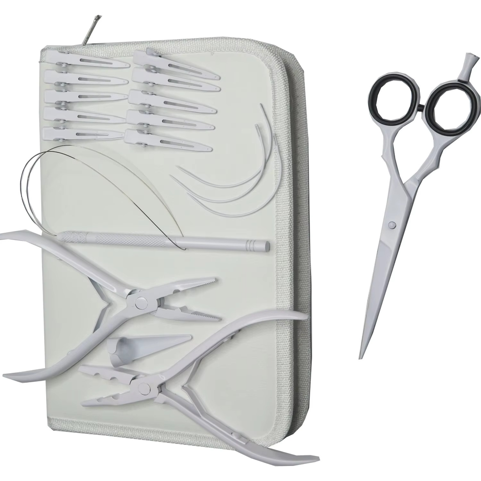 Kit d'outils professionnels pour extensions de cheveux à bandes et micro-liens, couleur blanche, logo personnalisé