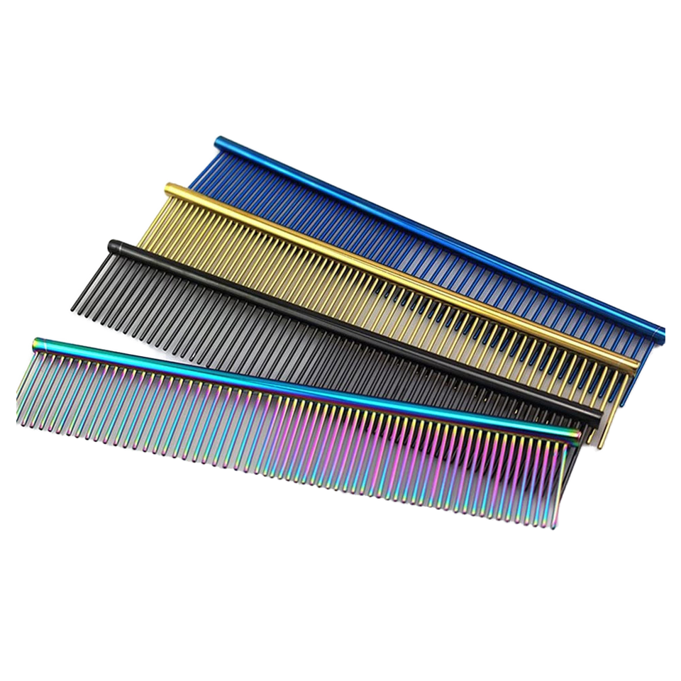 Peigne professionnel pour le toilettage des poils des animaux domestiques (chats et chiens), extrémités arrondies colorées, en acier inoxydable, pour démêler les nœuds et les boucles