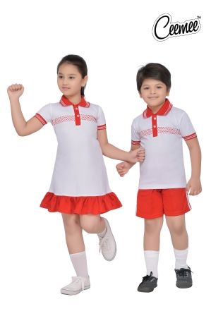 Textiles professionnels uniforme scolaire pour enfants unisexe coton tricoté T-shirt et pantalon de survêtement pour garçons T-shirt et jupe pour filles