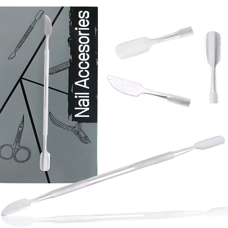 Pousse-cuticules professionnel en acier inoxydable écologique à double extrémité avec grip texturé, Nouveauté 2026, Instrument de préparation et de nettoyage des ongles