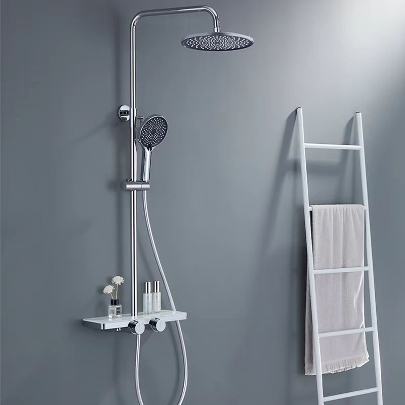 Colonne de douche professionnelle à trois voies avec étagère intégrée et fonction de mémoire de température pour installations de spa