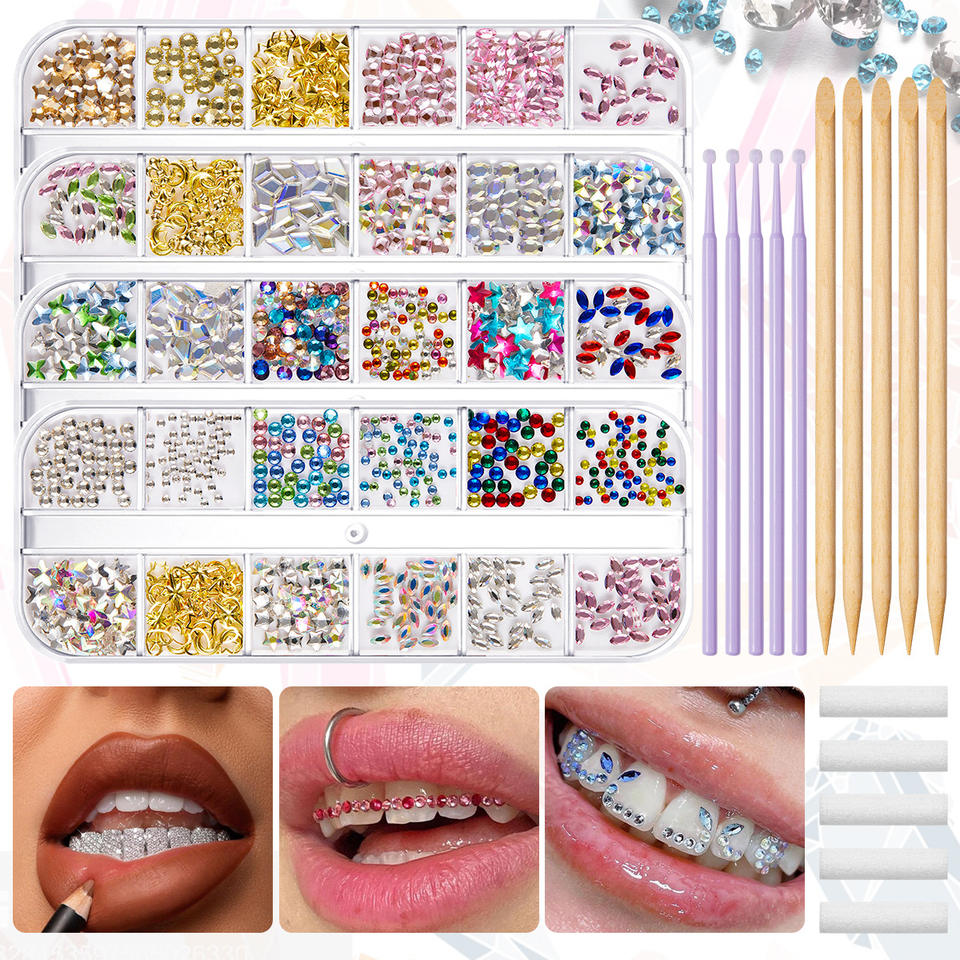 Kit Professionnel de Strass Dentaires Accessoires Diamant DIY Prothèses Dentaires Faux Ongles Pierres Plates Couleurs Assorties Outils