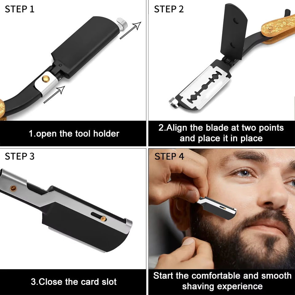 Rasoirs professionnels haut de gamme pour barbier, pliables 2-en-1, avec bâtonnet de gel, pour le rasage manuel masculin, le soin du visage, le coiffage de la barbe, le contouring et le nettoyage