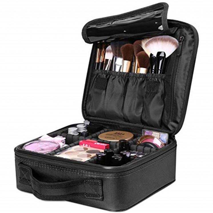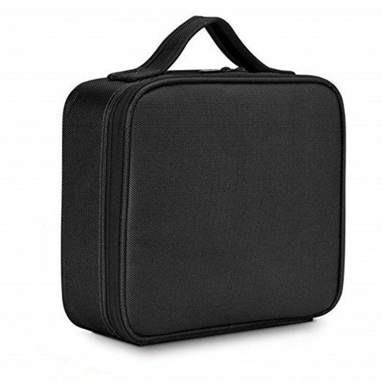 Valise de maquillage de voyage professionnelle, organiseur de cosmétiques, sac de rangement portable, fermeture éclair, matériau en nylon, motif géométrique pour le maquillage