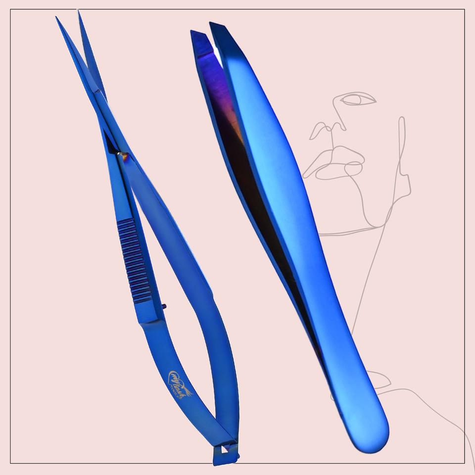 Nom du produit:Pince à épiler et ciseaux professionnels Set de ciseaux à pointes et à ressorts inclinés