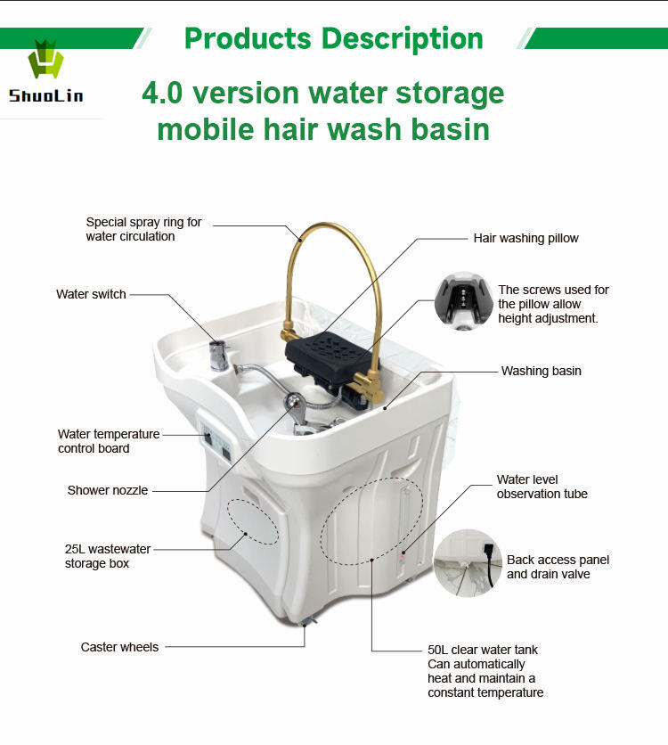 Professional Water Tank Shampoo Bed Sink Portable Stylist Head Spa Hair Washing Basin With Water Circulation Salon Furniture