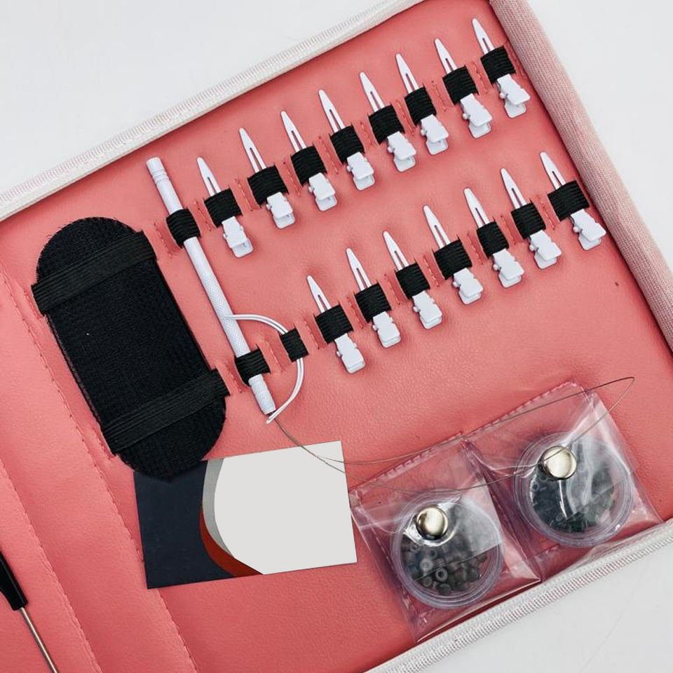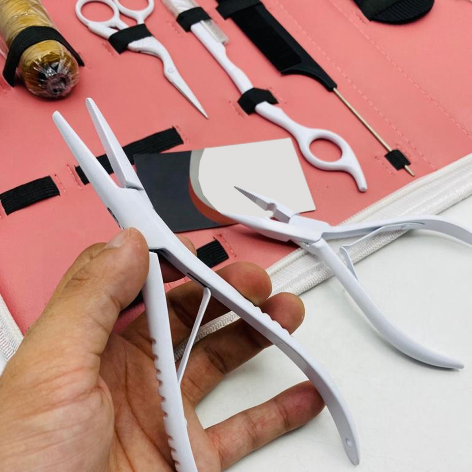 Boîte à outils d'extension de cheveux de trame professionnelle-Ensemble d'outils d'extension de cheveux experts Aiguilles en forme de C avec ciseaux pour stylistes