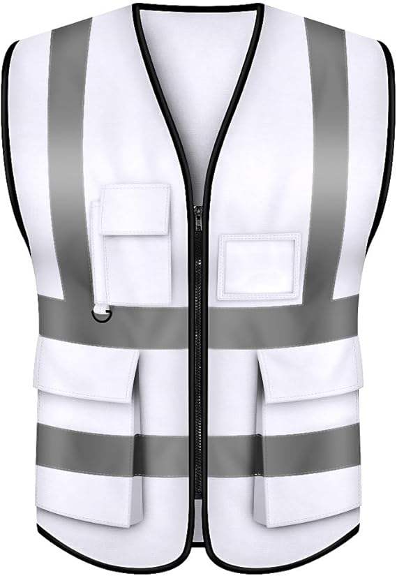 Gilet de sécurité professionnel blanc haute visibilité en maille polyester respirante avec bandes réfléchissantes et fermeture auto-agrippante
