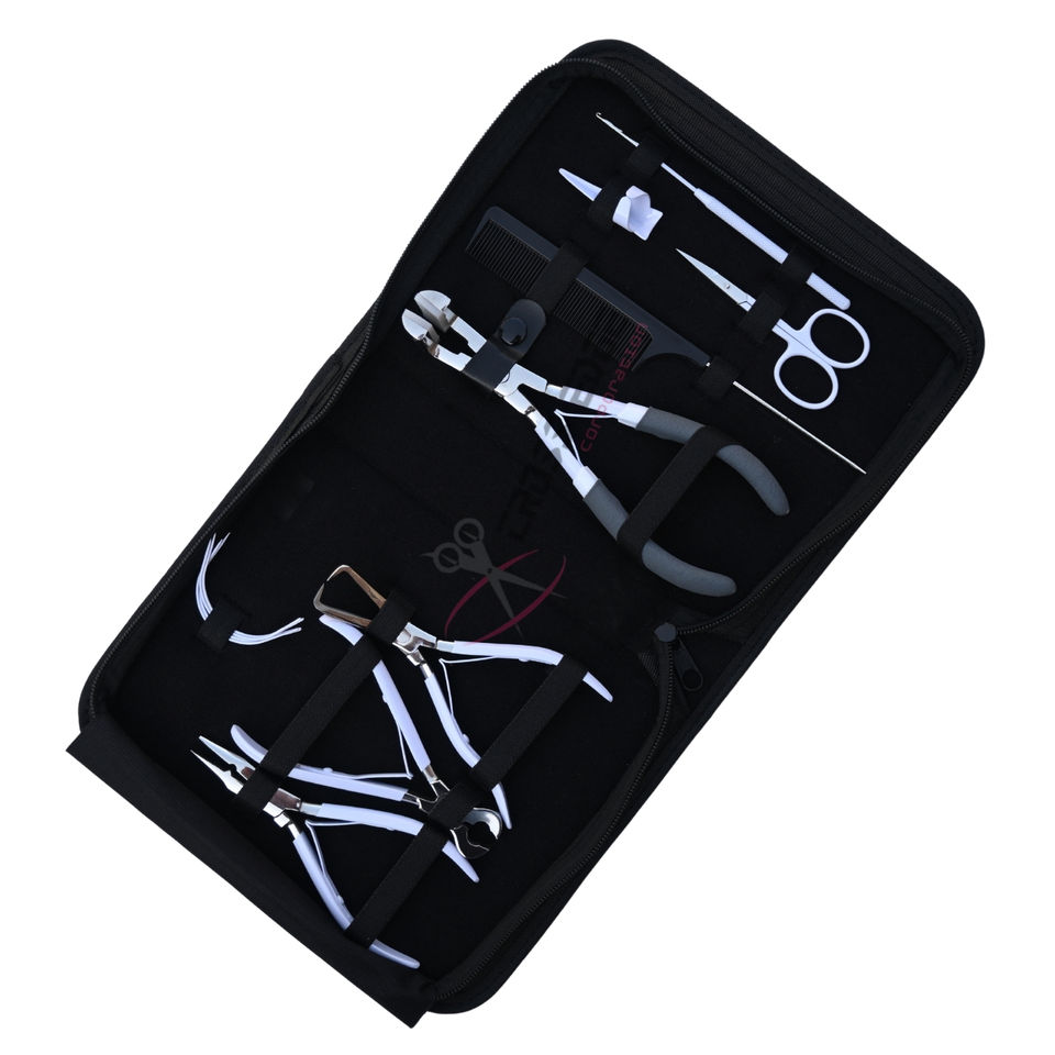 Kit d'outils professionnels pour extensions de cheveux Microlink blanc