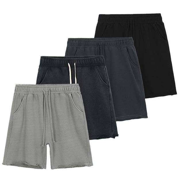 Shorts décontractés pour hommes en tissu French Terry 100% coton, effet usé, qualité supérieure, en vente au Pakistan.