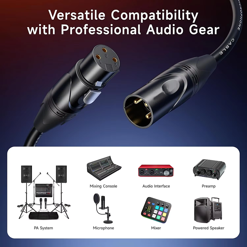 Câble Xlr professionnel Câbles XLR vers XLR courts de qualité supérieure, câble de microphone mâle à femelle, cordon de micro en cuivre sans oxygène (OFC)