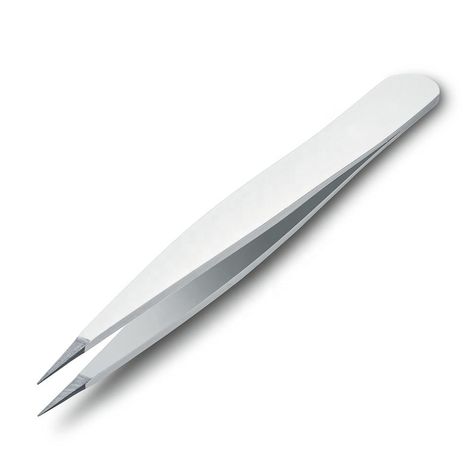 Pince à épiler professionnelle en acier inoxydable de qualité supérieure pour extensions de cils, à pointe fine, avec revêtement blanc et prise en main lisse pour un contrôle optimal