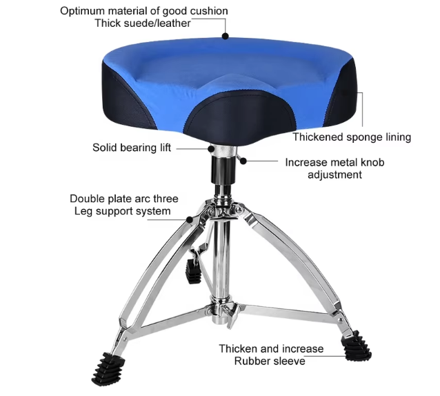Tabouret de batterie professionnel réglable en hauteur et doté d'une fonction antidérapante. Chaise de batterie et accessoires pour instruments de percussion.