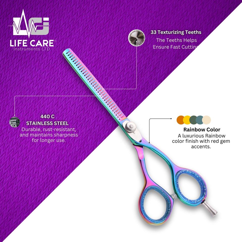 Ciseaux de coiffure professionnels et ciseaux à effiler avec finition arc-en-ciel