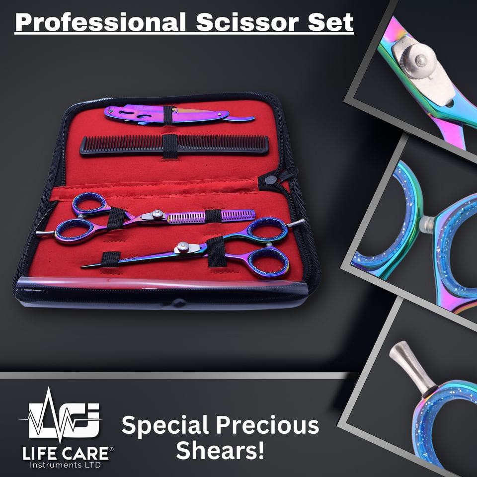 Dispositif:Ciseaux de coiffure professionnels et ciseaux à effiler avec finition arc-en-ciel