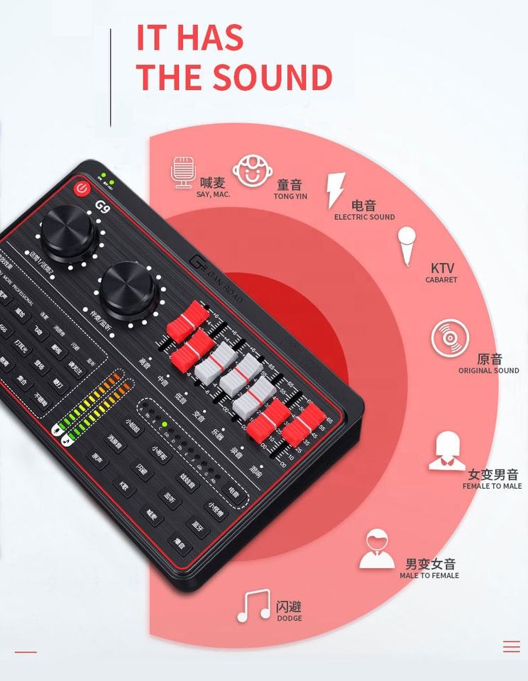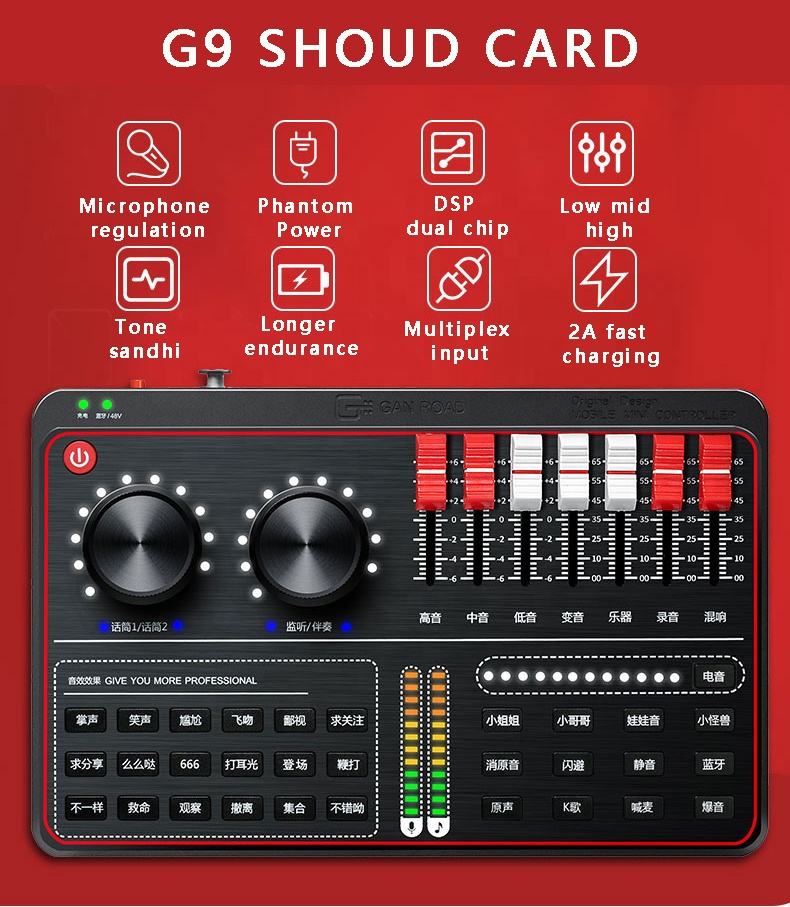 Professionnel G9 Interface usb carte son studio d'enregistrement pour téléphone pc ordinateur Application de Diffusion En Direct