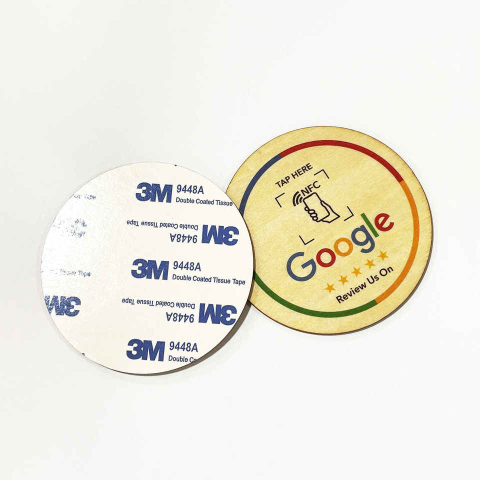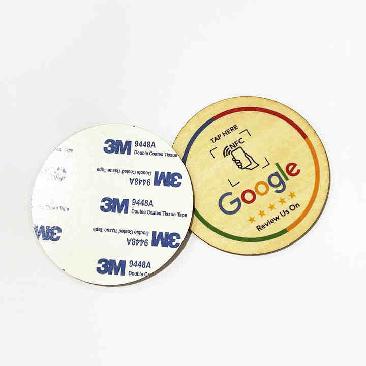 Plaques d'autocollant en bois RFID étanches NFC programmables Plaque en bois ronde pour carte de visite hôtel Snap TikTok Insta Google Review