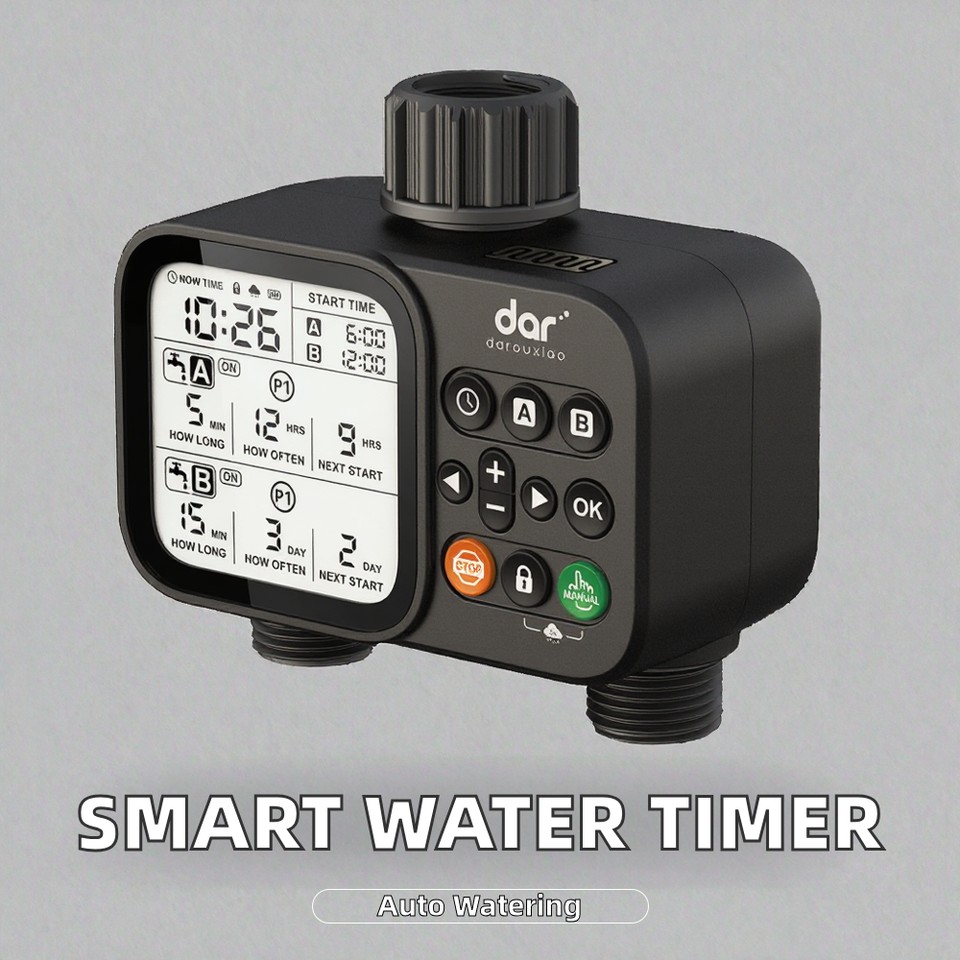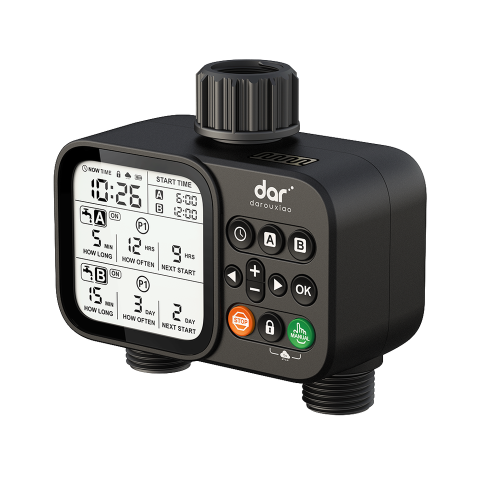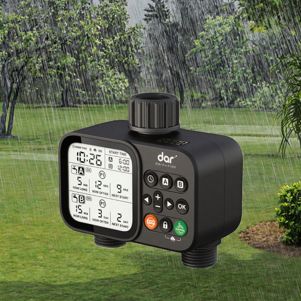 Programmateur d'arrosage extérieur en plastique avec retardateur de pluie, système d'arrosage automatique pour tuyau d'arrosage, pelouse, piscine et 2 prises