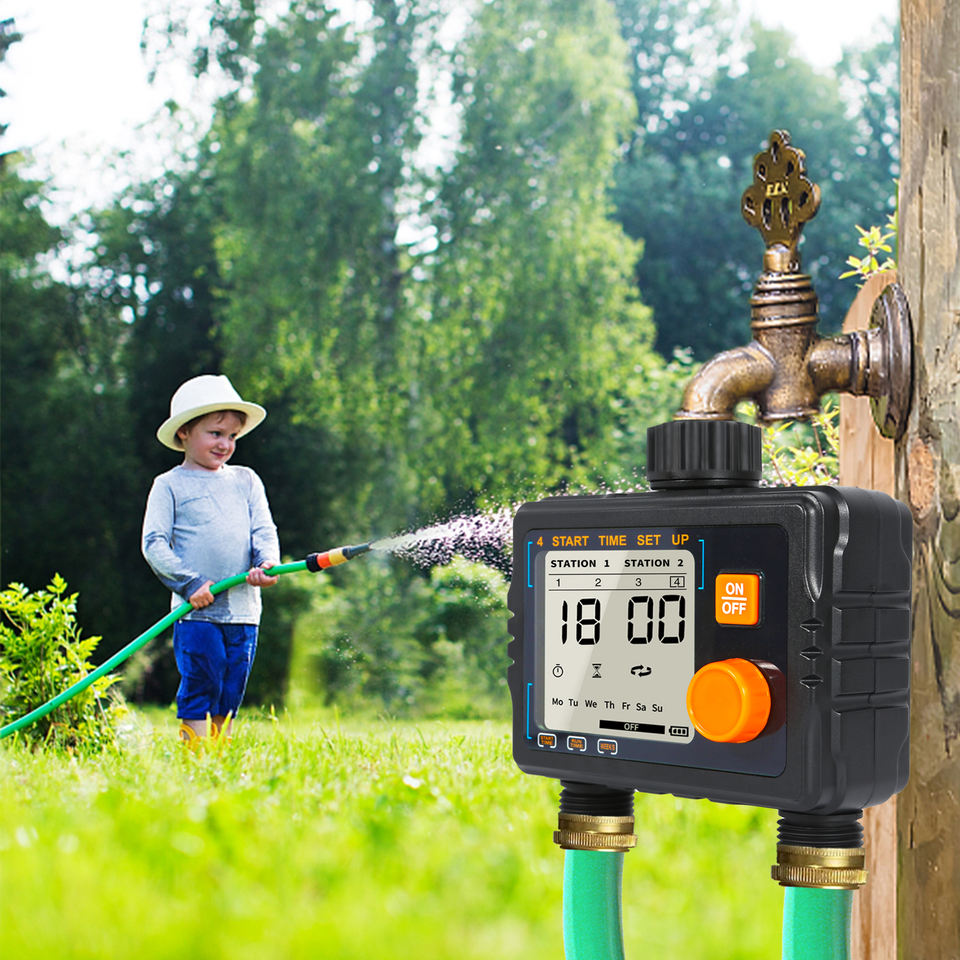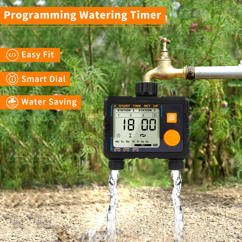Programmation d'arrosage automatique du jardin, 2 sorties, minuterie de robinet, électrovanne pour arroseur extérieur, tuyau et irrigation