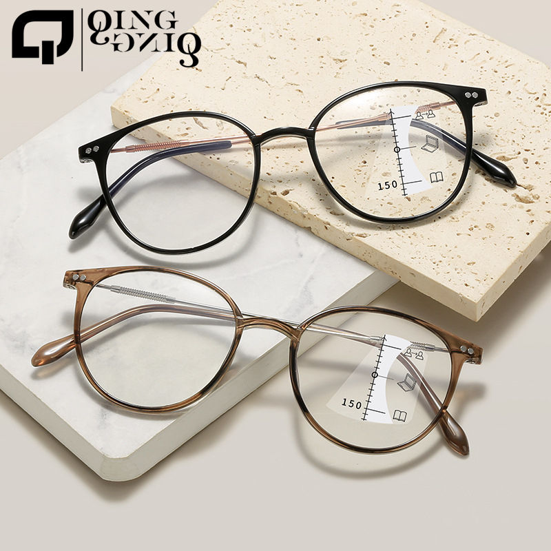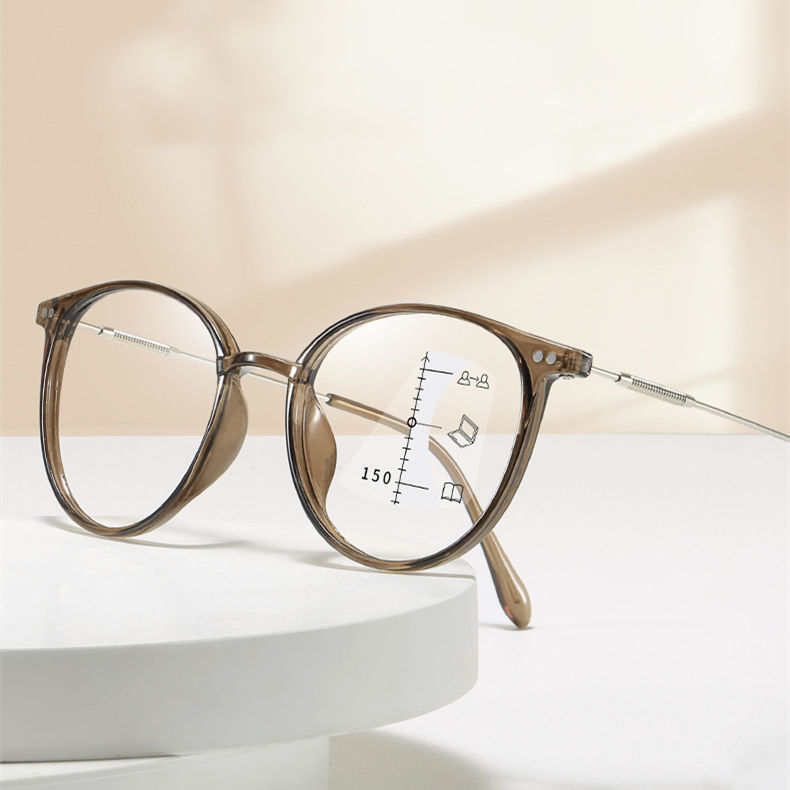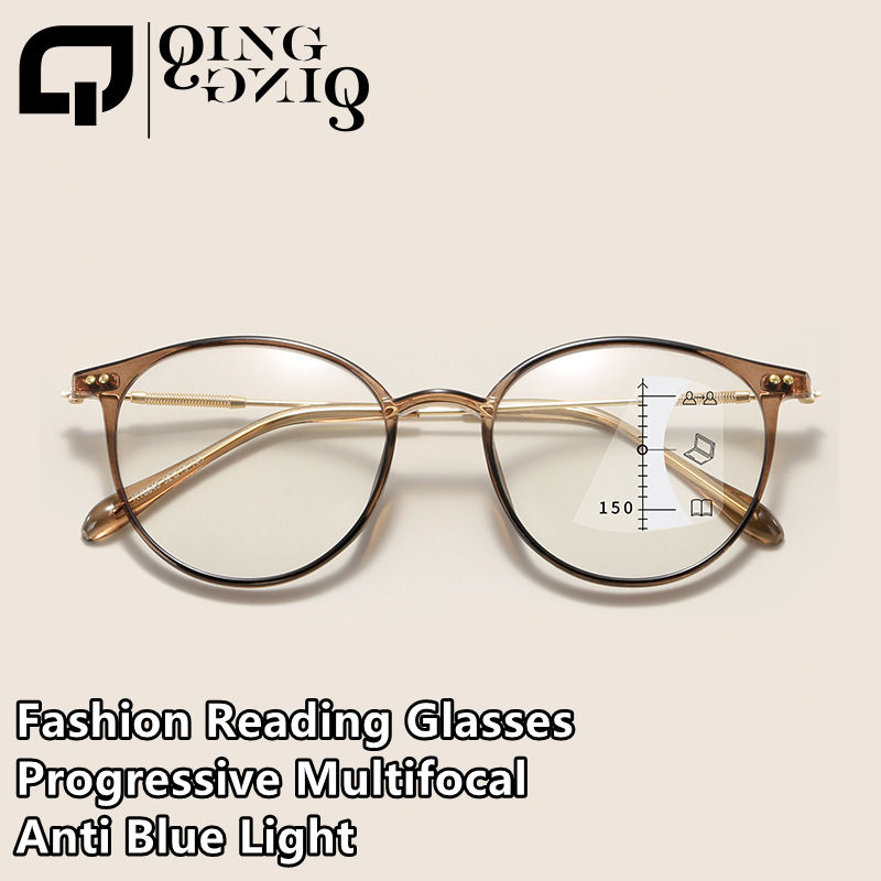 Progressive multifocale ronde transparente fauve 2024 pc métal occhiali lettura anti lumière bleue lunettes de lecture femmes marque de luxe