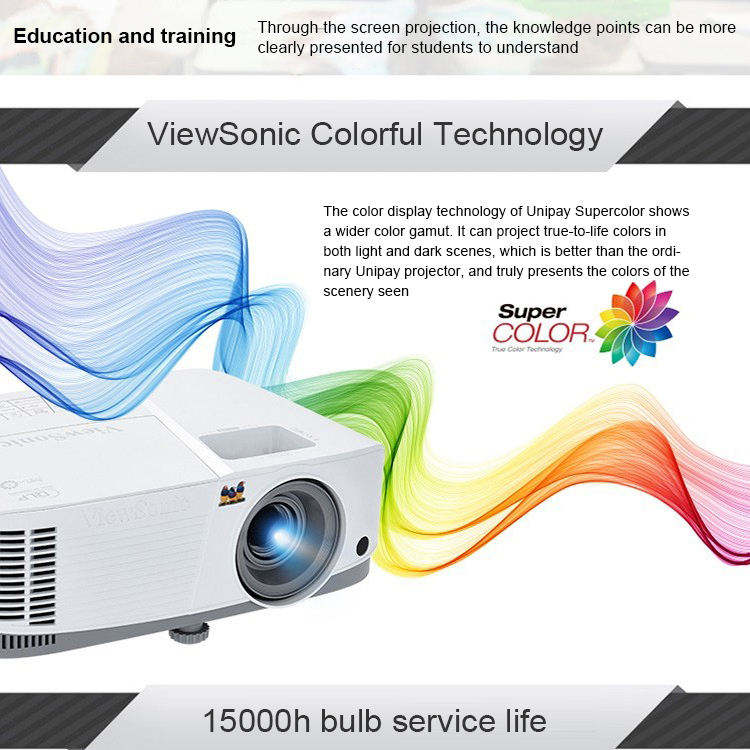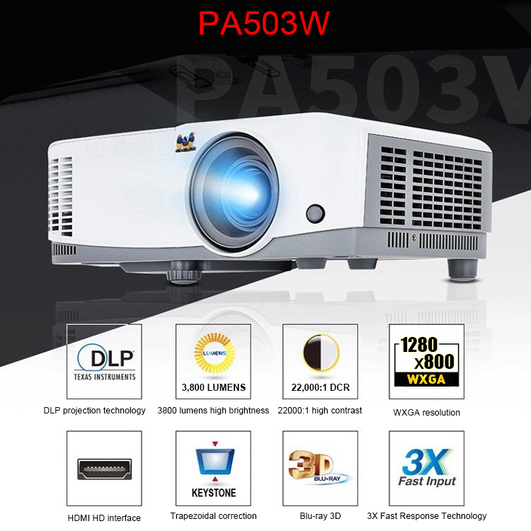 Écran de projecteur ViewSonic PA503W Projecteur d'éducation commerciale 3800 lumens WXGA Projecteur portable