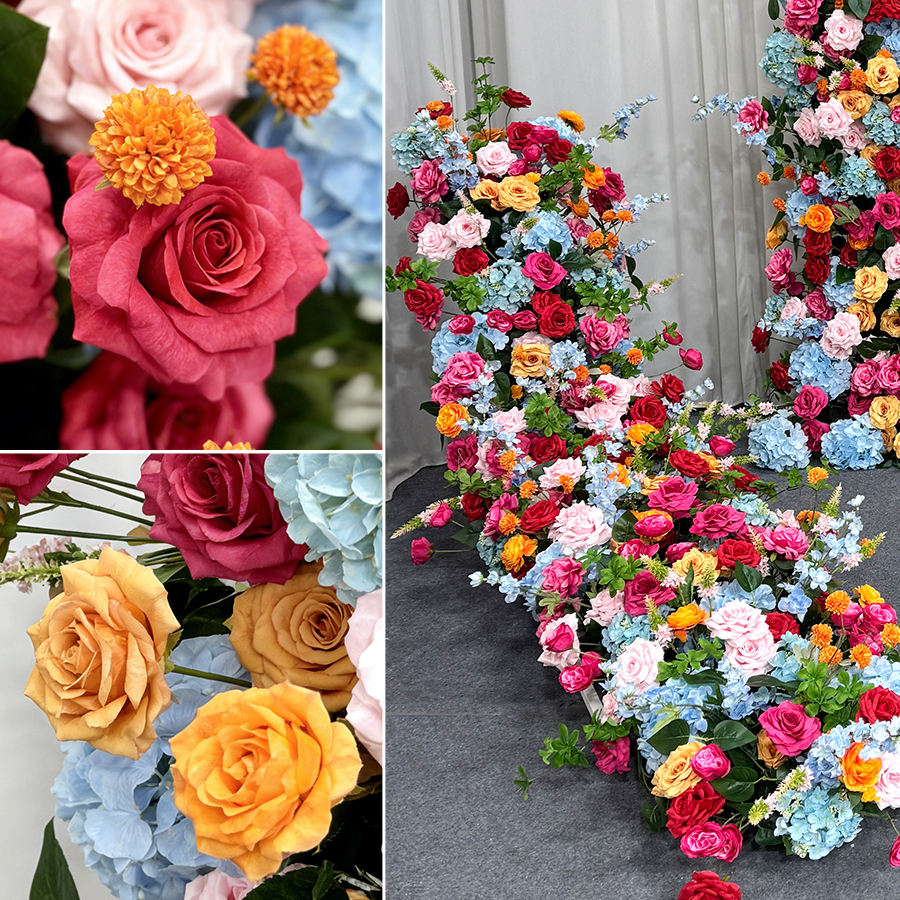 Colonne de fleurs artificielles en soie réaliste, arc-en-ciel, pour la décoration de mariage, d'anniversaire, d'événements et de toiles de fond