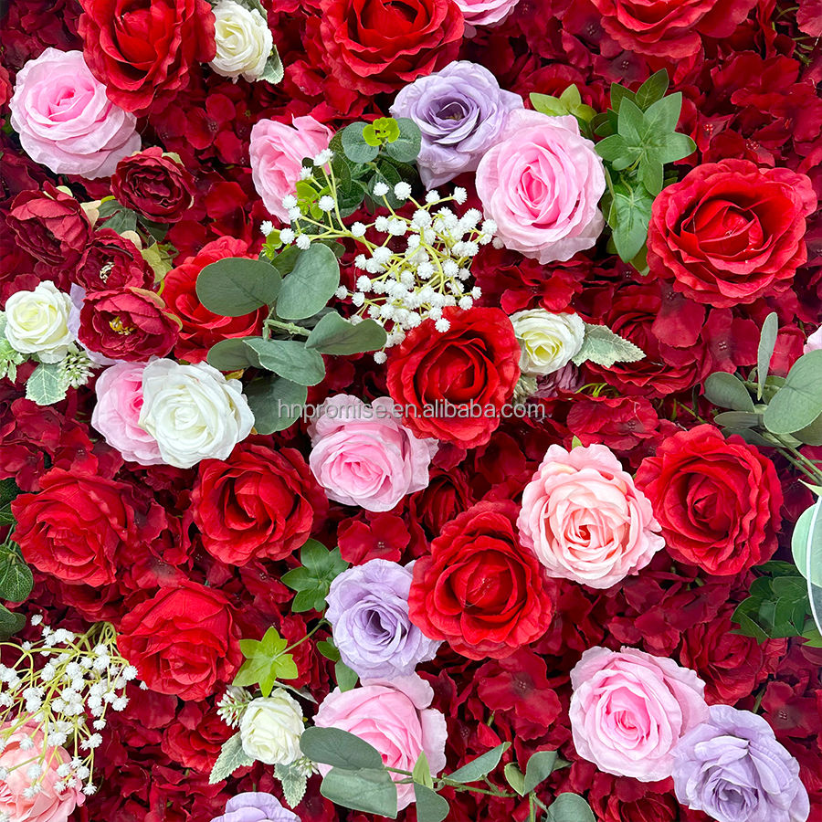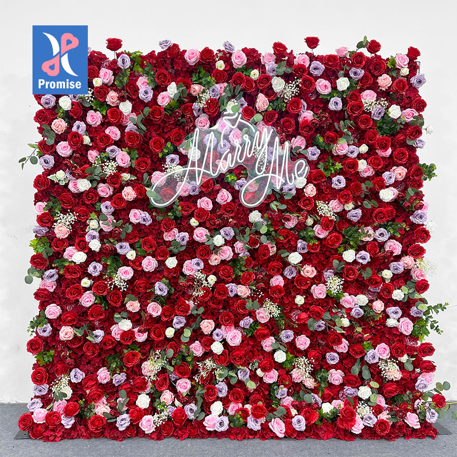 Promise Wedding Events Centerpiece Red Flower Wall Panel Backdrop Artificial Flower Wall Decoration