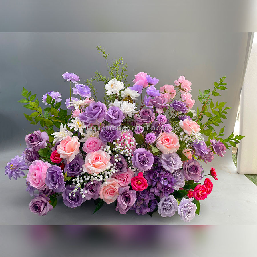 Promesse mariage fleurs violettes coureurs rangées de fleurs fleurs artificielles chemin de Table pour la décoration de mariage