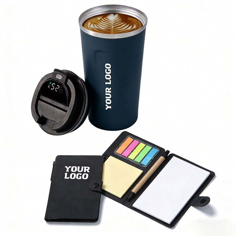Mug intelligent isotherme à double paroi en métal avec couvercle LED et affichage de la température, personnalisable avec logo, idéal comme cadeau d'affaires promotionnel