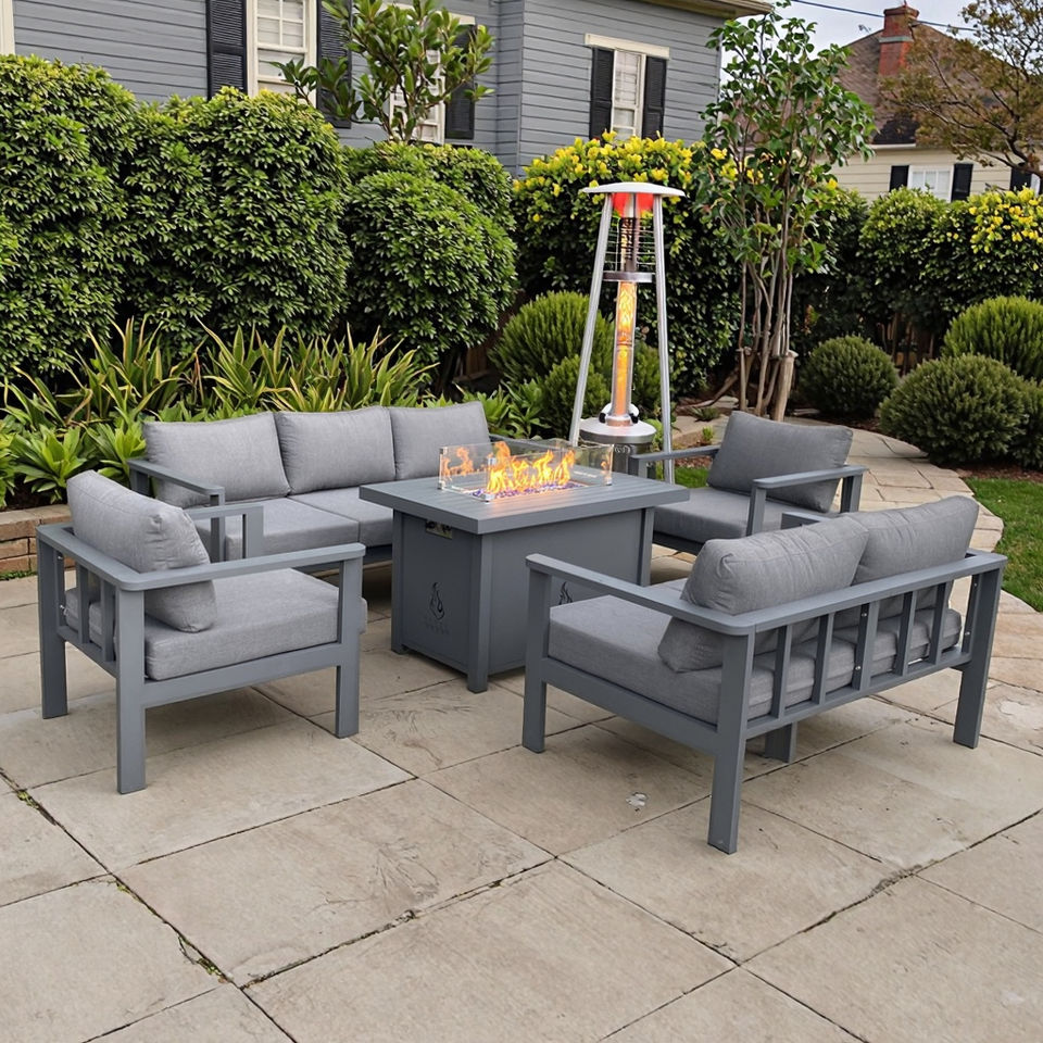 Promo Table rectangulaire pour foyer de patio en aluminium avec canapé