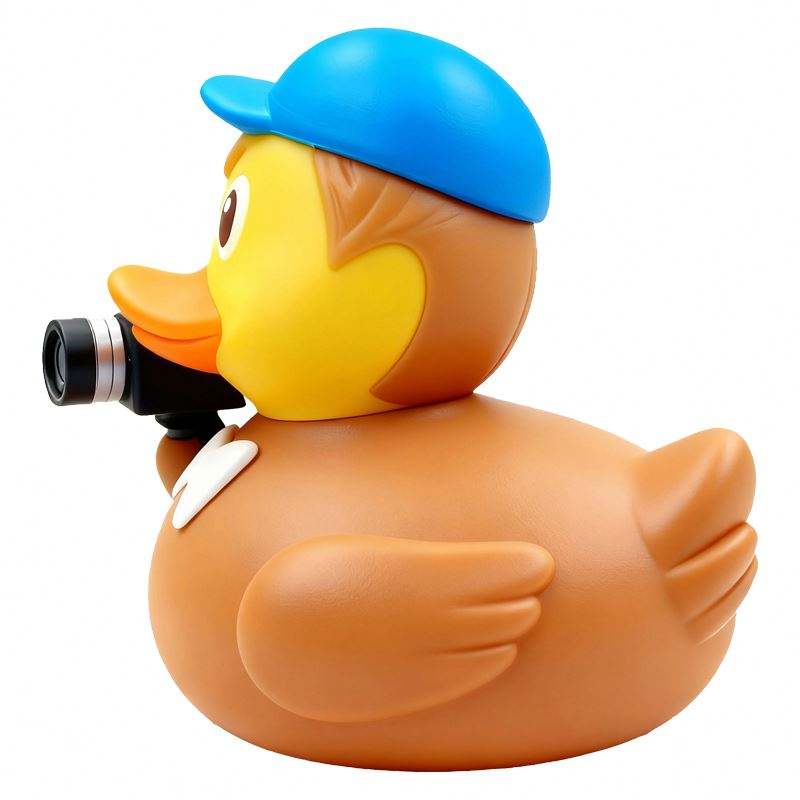 Cadeau promotionnel 2025 : Canard de bain en PVC personnalisé motif dessin animé, Mini jouets artisanaux en plastique en forme d'animaux, Figurine de caméraman en vinyle