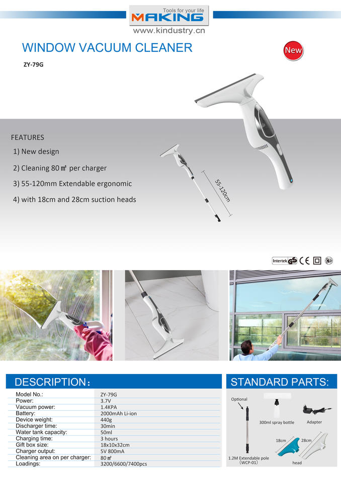 Promotion : Nettoyeur de vitres électrique sans fil avec tige télescopique/extension de 1,2 m pour aspirateur de voiture – Deux têtes d'aspiration