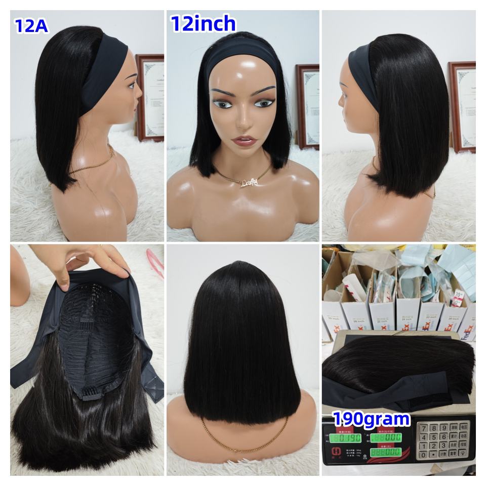 Promotion 12A Vietnamese Hair Wigs SDD Bone Straight Headband Bob Wigs 10 12inch Natural Black 100% Human Hair Wholesale Factory