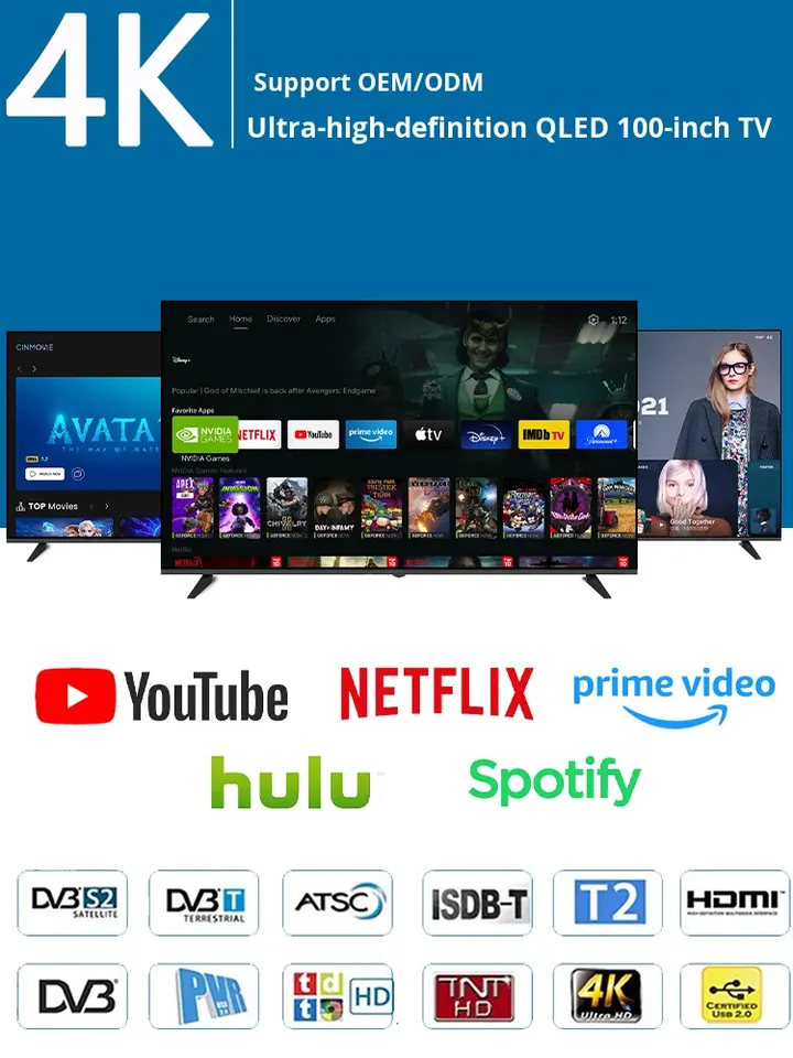 Promotion Téléviseur intelligent QLED 32 pouces Verre anti-explosion Système Android 14 Extérieur noir 1080p 144Hz OEM DLNA Téléviseur d'hôtel 4K