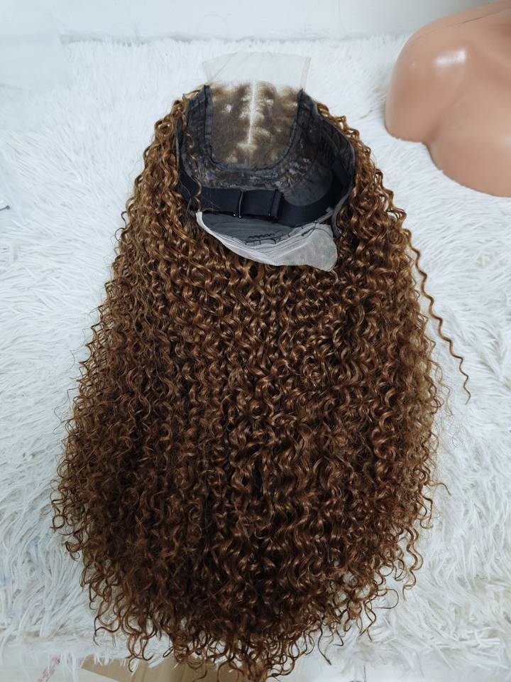 Promotion $88 4x4 Vente flash Perruques en cheveux humains avec fermeture en dentelle 22 pouces Jerry Curly Couleur 30 # 11A 270 grammes 300% de densité Vente en gros Usine