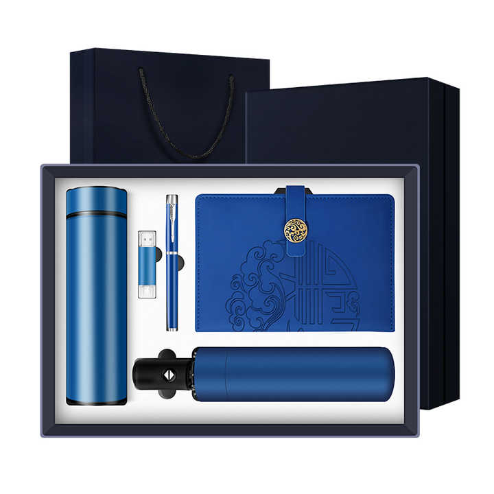 Coffret Cadeau d'Entreprise Promotionnel A5 avec Carnet, Stylo Personnalisé, Gourde 500ml, Clé USB 32G, Parapluie Automatique - Cadeau d'Affaires Personnalisable 5-en-1