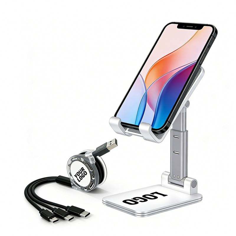 Ensemble cadeau électronique promotionnel 3 en 1, câble USB pour iPhone, câbles de charge 3A à charge rapide, support de téléphone portable rétractable