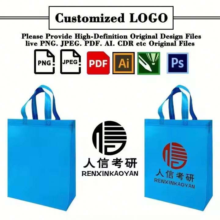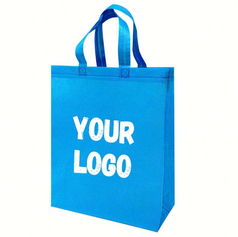 Sacs de courses personnalisés avec logo imprimé pour promotion, sacs de courses bleus personnalisés pour entreprises, sacs de déménagement non tissés