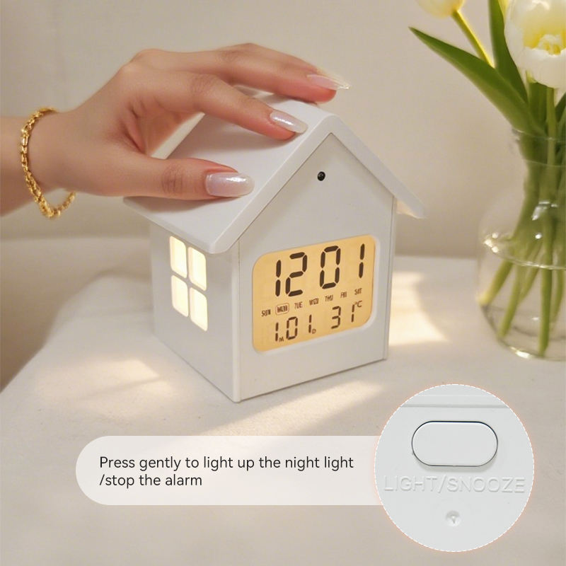 Nom:Horloge de Table en Bois LED Digitale avec Alarme et Design Maison Mignonne pour Étudiant