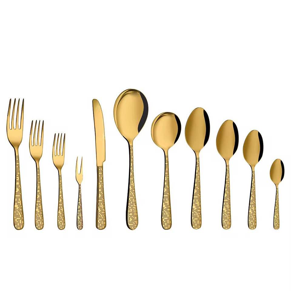 Cadeau promotionnel Ensemble de couverts dorés de restaurant Ensemble de cuillère fourchette et couteau de luxe en acier inoxydable Couverts en or en vrac polis miroir