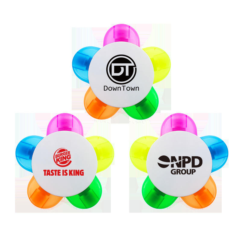 Produits de promotion imprimés stylo surligneur 5 couleurs forme de fleur stylo marqueur cadeau personnalisé pour la publicité